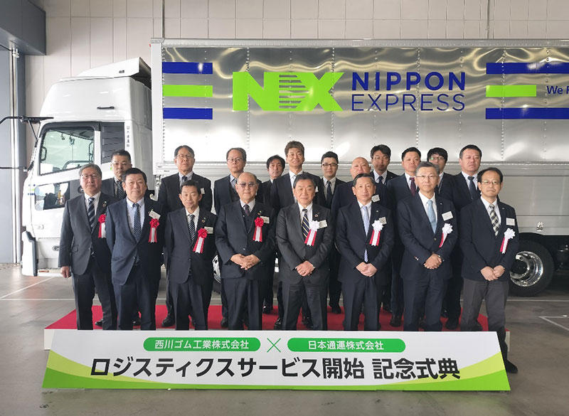 NXグループの日本通運(本社・東京、竹添進二郎社長)は3月9日、広島市の物流施設「DPL広島観音」内で、西川ゴム工業の物流拠点「NX広島観音LC」の開所式を実施した。西川ゴム工業の物流拠点再編支援の一環。