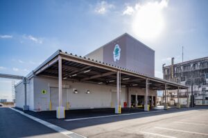保管レイアウトを見直し、荷役作業を自動化することで、安定した運用が可能な物流体制を整えた。倉庫棟の一部には、再生可能エネルギーの活用に向けて太陽光パネルを設置した。
