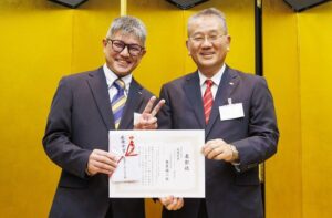 受賞したSBSフレックネットの篠原誠二さん(左)とSBSHDの鎌田社長