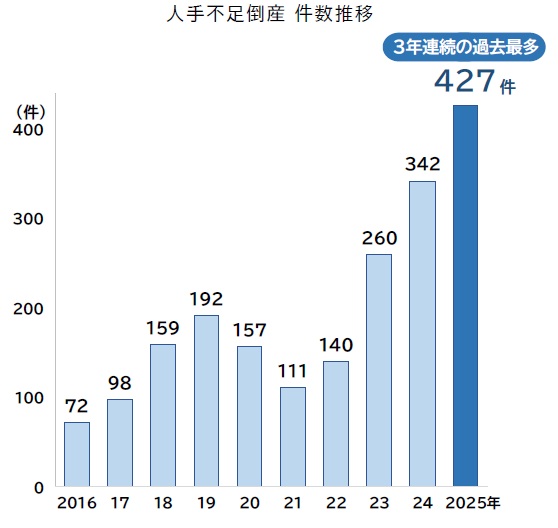 25年人手不足倒産、427件で過去最多 物流業も高水準