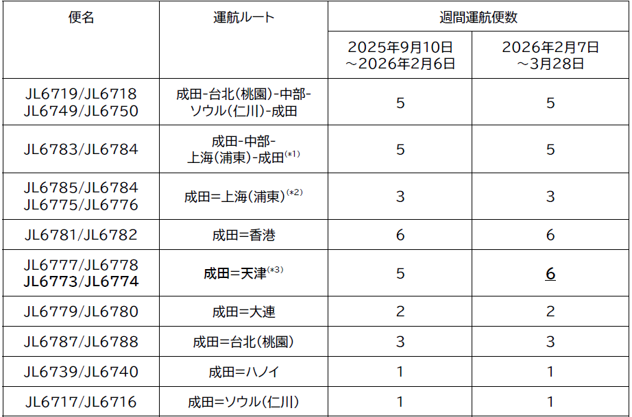 JAL、貨物専用機の成田―天津線を増便