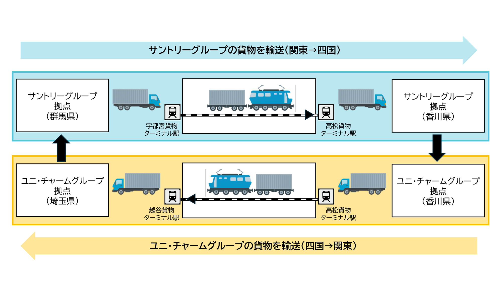 サントリーHDとユニ・チャーム、関東―四国間で鉄道コンテナ往復輸送